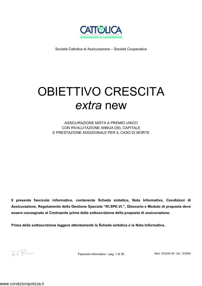 Cattolica – Obiettivo Crescita Extra New – Modello ocexn 28 Edizione 12-2005 [35P] €2.50 – Acquisto Checkout Aggiunto al carrello