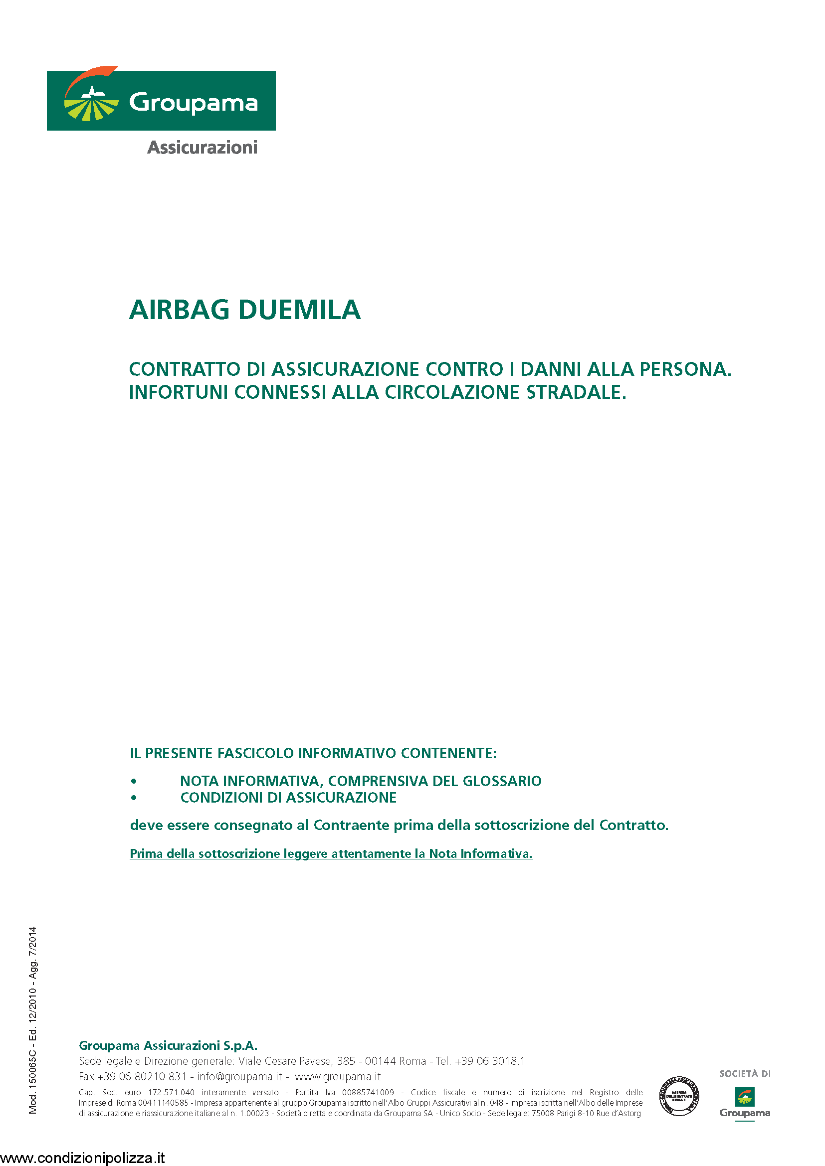 Groupama – Airbag Duemila – Modello 150065c Edizione 12-2010 agg 07-2014 [22P] Compagnia : Groupama Prodotto : Airbag Duemila Descrizione : Contratto Di Assicurazione Contri I Danni Alla Persona Modello : 150065c Edizione : 12-2010 agg 07-2014 Formato Documento : PDF N. Pagine Documento : 22 €2.50 – Acquisto Checkout Aggiunto al carrello